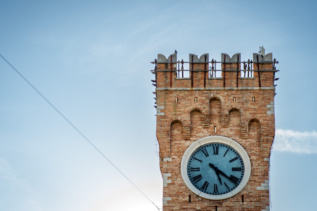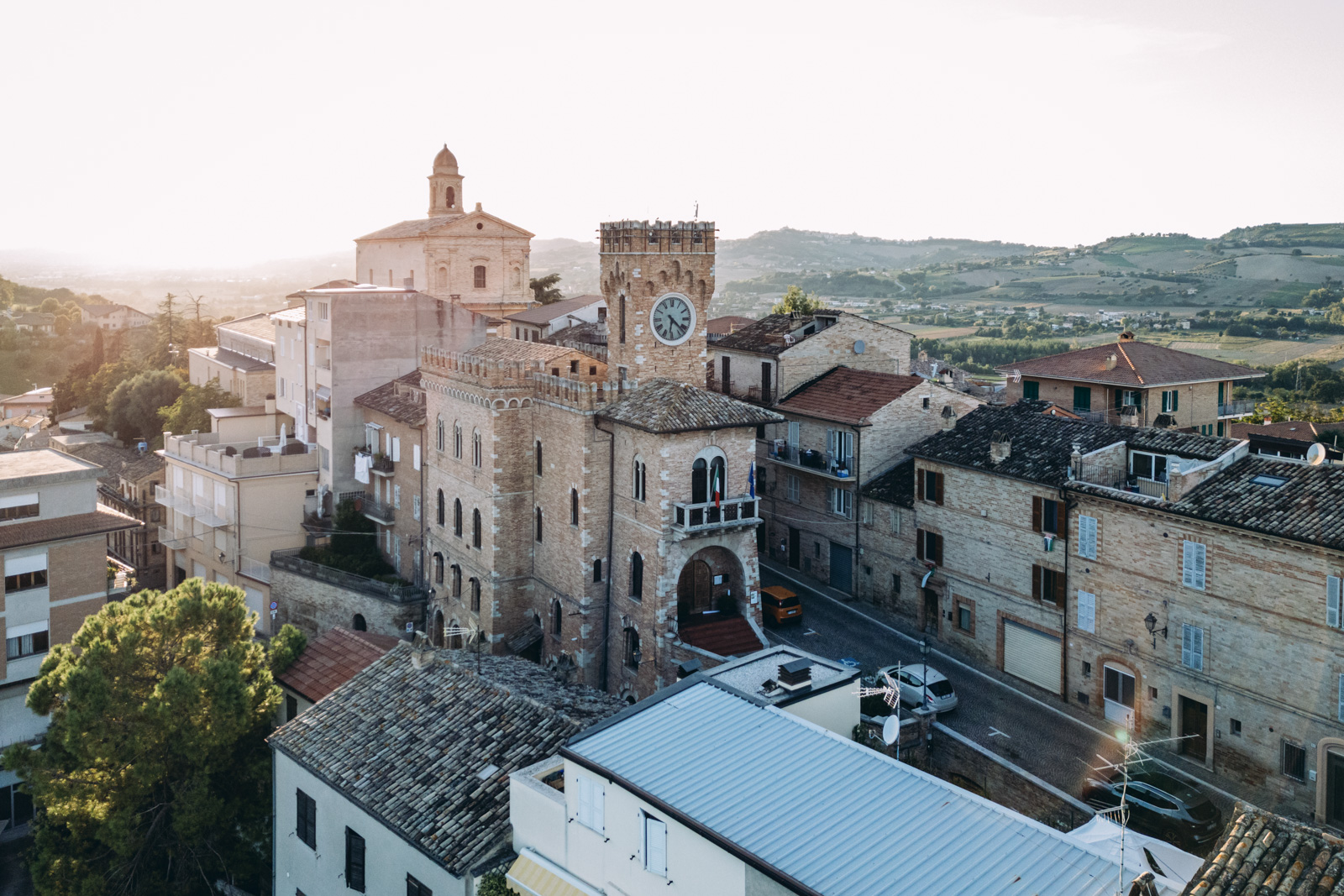 At the heart of the village stands Castello Azzolino, a symbol of local pride. Around it unfolds the urban fabric of exposed Fermo-style brickwork, the result of the craftsmanship of Grottazzolina’s master masons who, between the 18th and 19th centuries, perfected a refined brick-making art recognizable in architectural details and in the churches of the historic center: the Church of the Most Holy Sacrament and the Rosary, featuring works by Luigi Fontana, and the Parish Church of San Giovanni Battista, with paintings by Ubaldo Ricci.